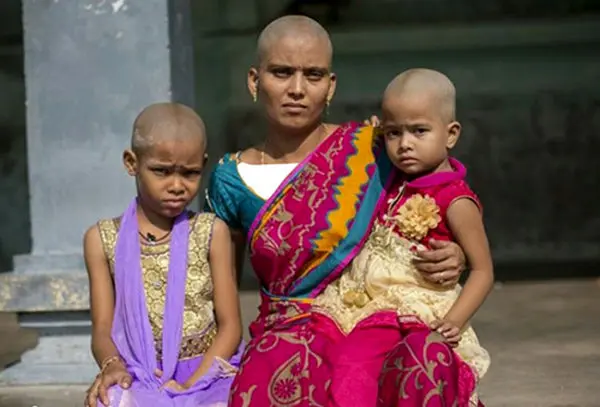 زیبایی زنان هندی همیشه زبانزد و مورد تحسین جهانیان بوده است.حتما همیشه در فیلمها یا تصاویر منتشر شده از زنان هندی دیده اید که آنها موهایی درخشان و بسیار بلند و زیبا دارند ! موهایی که اکثر وقتها بافته شده یا بر روی شانه هایشان ریخته اند و همیشه روغن زده شده است .  اما در یکی از شهرهای هند بسیاری از زنان موهای خود را از ته میتراشند.