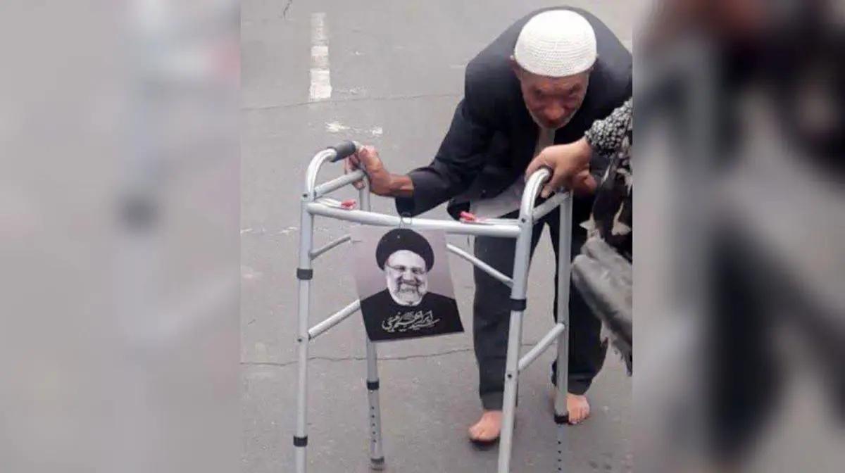 صبح امروز 2 خرداد ماه مراسم تشییع رئیس جمهور شهید و تیم همراهان در تهران برگزار شد که عکسی از پیرترین فرد شرکت کننده در این مراسم منتشر شده است.