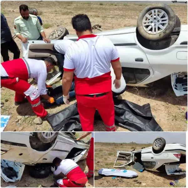 مرگ تلخ سرنشین سمند بعد از واژگونی/ نفر دوم جان سالم به در برد!