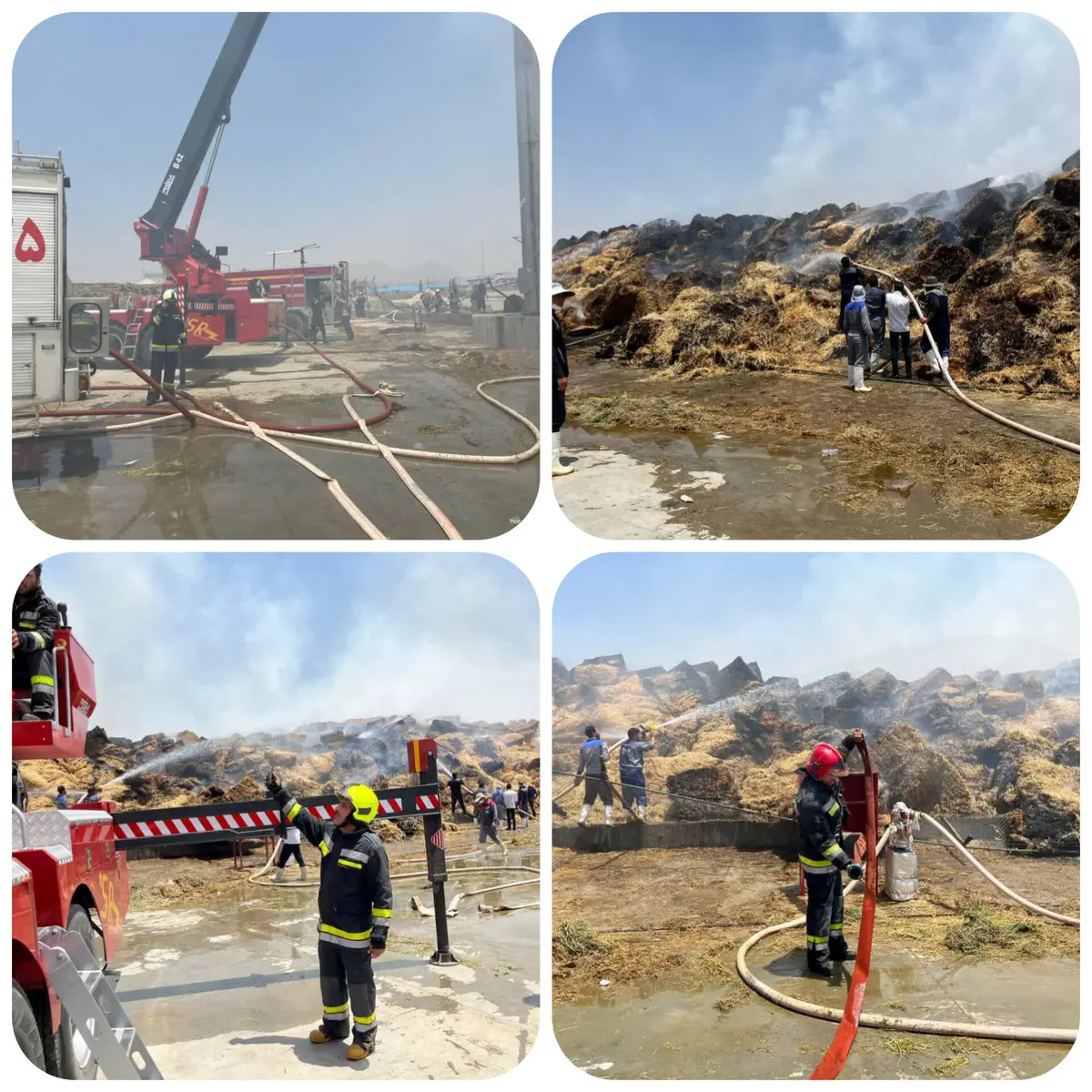 انبار علوفه غرق آتش/ ۴۰ آتش نشان از راه رسیدند!+عکس و فیلم