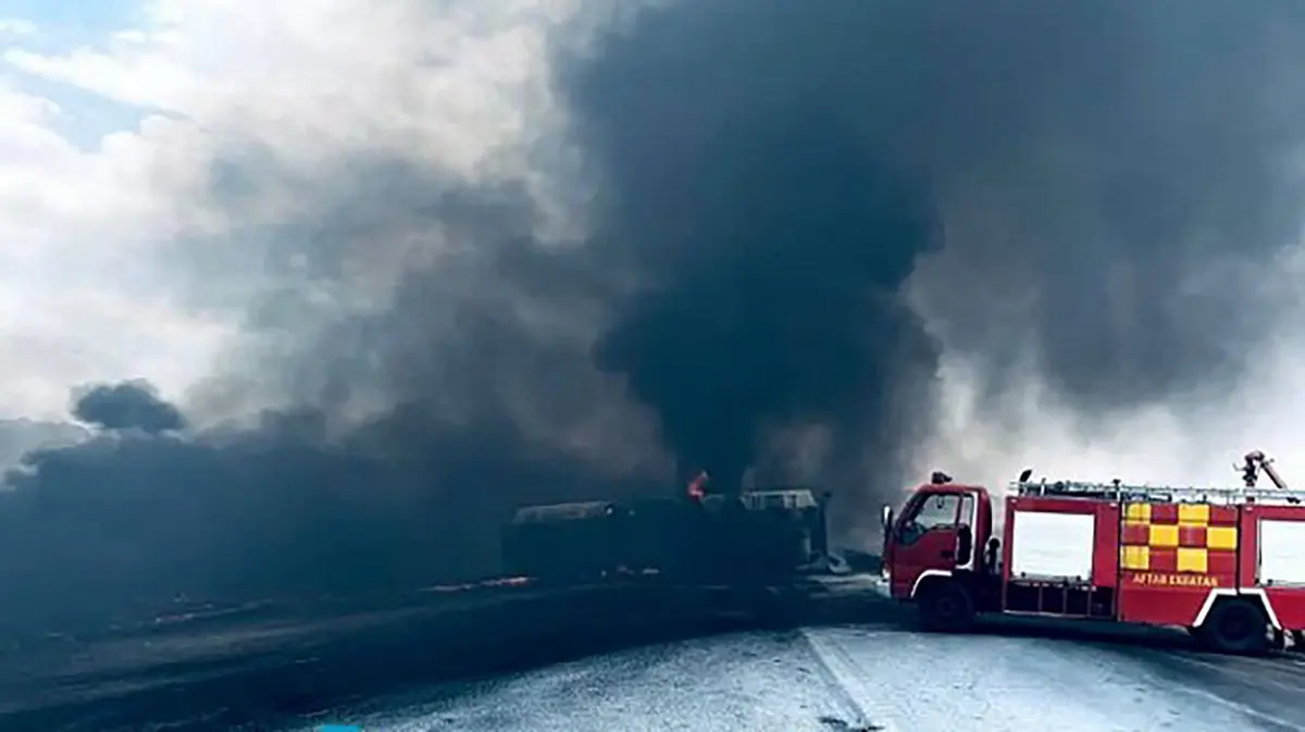 زنده زنده سوختن راننده تریلی حامل سوخت در باغین