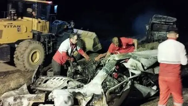 حوادث رکنا:یک دستگاه خودروی سواری پژو در تصادف با یک دستگاه ایسوزو آتش گرفت.