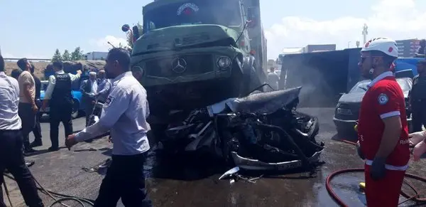 تصادف زنحیره ای وحشتناک و له شدن خودروی سواری پژو ۲۰۶ در مرند + جزئیات و عکس