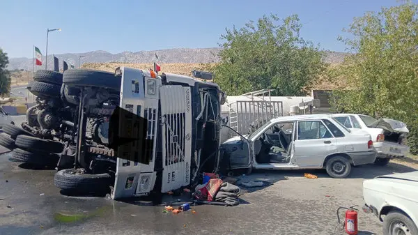 5 عکس از واژگونی کامیون حامل گاز پنتان در ایلام / مردم از محل حادثه دوری کنند