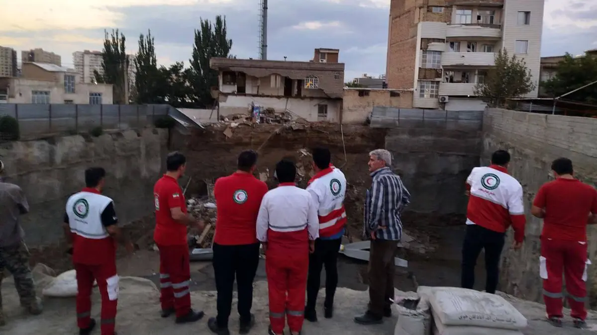 ریزش ساختمان مسکونی در ارومیه / سگ های زنده یاب در محل حاضر هستند