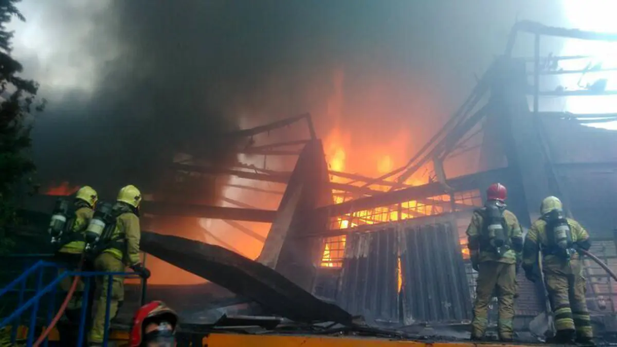 آتش سوزی محل استراحت کارگران ساختمانی در تهران + عکس