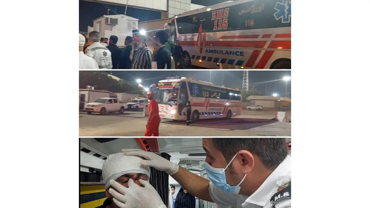 وی گفت: چهار دستگاه آمبولانس و سه دستگاه اتوبوس آمبولانس با هماهنگی پست فرماندهی حادثه ICP، از نزدیکترین پایگاههای سیار اورژانس ۱۱۵ مستقر در شلمچه به نقطه صفر مرزی اعزام و تعداد ۴۶مصدوم را از طرف عراق تحویل گرفته شدند.