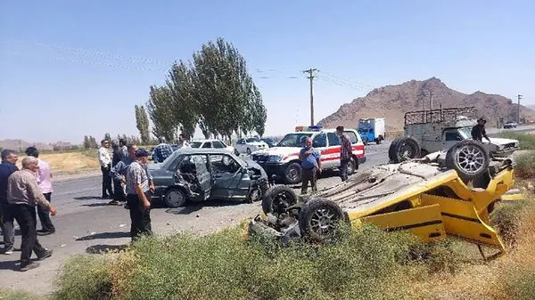 وی اضافه کرد: در این سانحه رانندگی، خودرو سواری پراید و تاکسی پژو با هم برخورد کردند که این برخورد سبب واژگونی تاکسی بین شهری پژو شد.