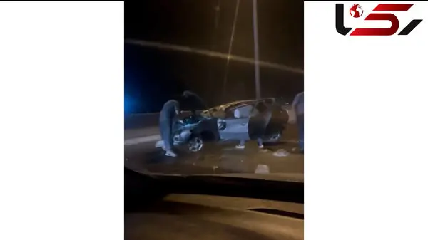 فیلم تصادف وحشتناک روی پل کردان / خانم راننده حالت طبیعی نداشت!