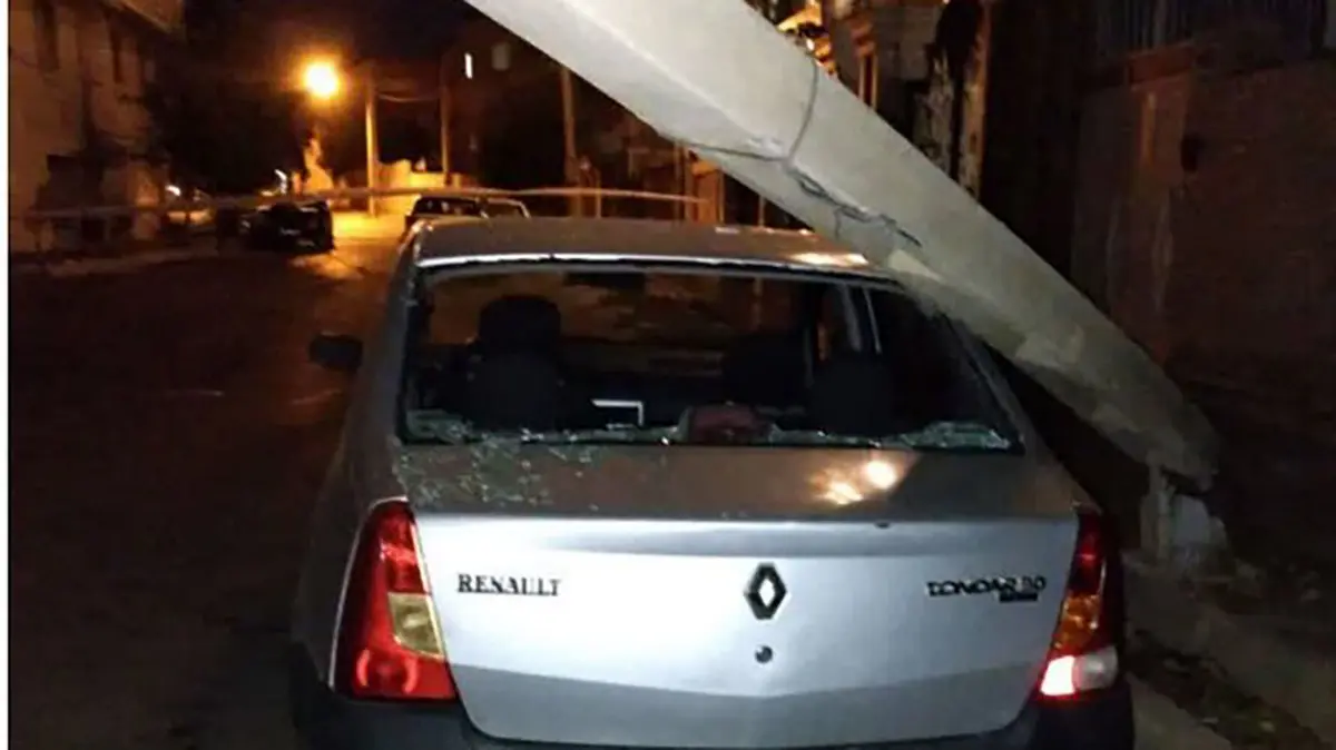 سقوط  هولناک تیر چراغ برق روی یک خودرو در سمنان