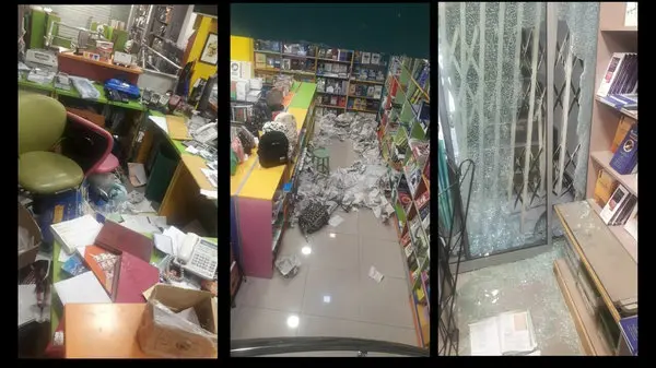 فرهاد تیمورزاده با تاکید بر اینکه حتی یک جلد کتاب هم از کتاب‌فروشی سرقت نشده است، ادامه داد: همکاران کتاب‌فروشی محاسبه کردند، حدود ۶۰ تا ۷۰ میلیون تومان کیف، کوله و لوازم‌التحریر به سرقت رفته است. از طرفی برای ورود و سرقت حدود ۳۰ میلیون تومان به فروشگاه خسارت زدند. برای مثال حفاظ آکاردئونی را شکستند، هارد و دستگاه دی‌وی‌ار (دستگاه DVR، تصاویر آنالوگ را از دوربین مداربسته دریافت و ذخیر می‌کند) را شکستند و حافظه آن را داخل توالت فرنگی انداختند، که عملا باید جایگزین آن‌ها تهیه شود.