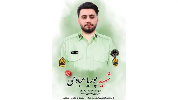 حوادث رکنا: سرهنگ تقدیسی معاون فرهنگی و اجتماعی فرماندهی انتظامی مازندران از شهادت استواریکم پوریا عبادی در شهرستان چالوس خبر داد.