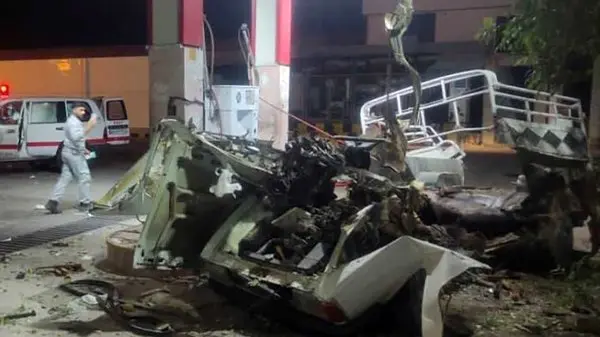 انفجار در پمپ گاز «جم» ۴ مصدوم برجای گذاشت / وانت پیکان متلاشی شد+ عکس