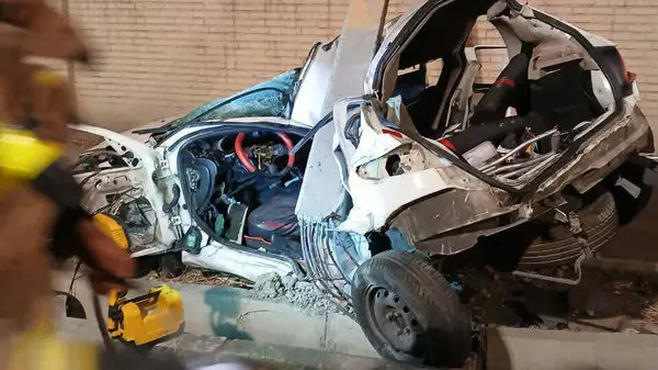 دو نفر از سرنشینان مرد توانسته بودند خود را از خودرو خارج کنند، اما حال یکی از آنها وخیم بود. دو زن دیگر اما در داخل خودرو محبوس شده بودند. آتشنشانان با تلاش فراوان و برش قطعات فلزی خودرو، هر دو زن را از خودرو خارج کردند. متأسفانه یکی از آنها جان خود را از دست داده بود و دیگری مصدوم شده بود.