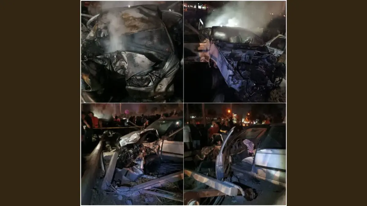 کورس مرگبار 2 خودرو در بلوار سید مرتضی کاشمر / پسر جوان زنده زنده در آتش سوخت + عکس
