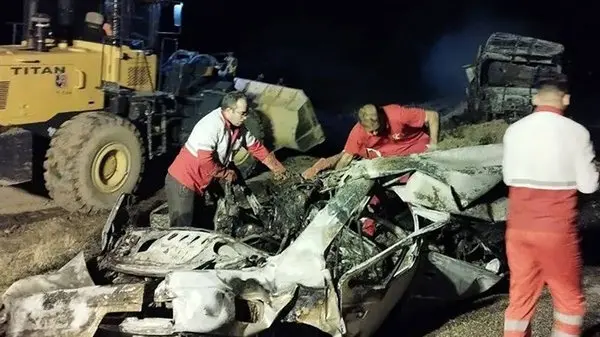 14 کشته وز خمی در تصادف زنجیری تریلی با تیبا و شاهین و پژو 405 در هرسین