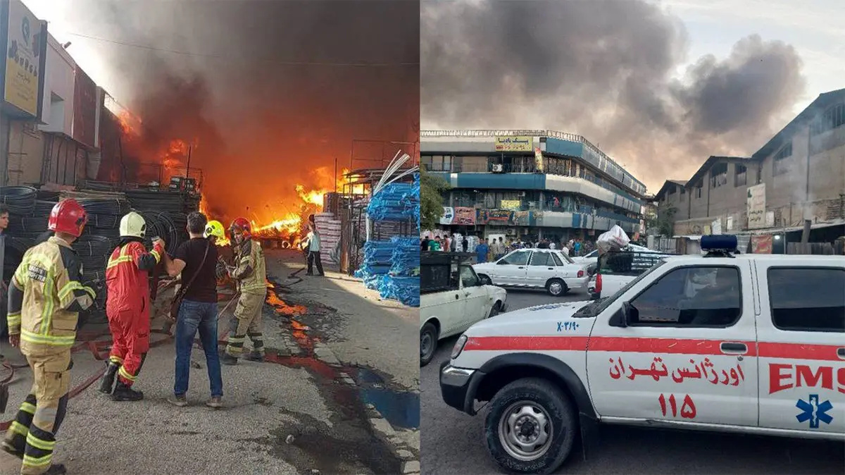 حوادث رکنا: عملیات برای مهار حریق در بازار آهن شادآباد ادامه دارد.