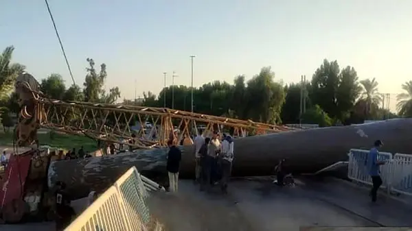سقوط جرثقیل در پروژه پل شهدای اروند + وضعیت کارگران