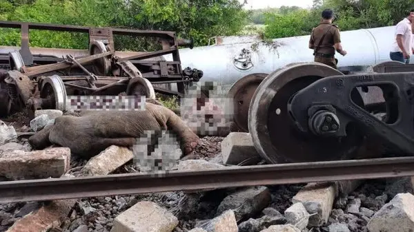 قطع خط آهن به دنبال تصادف مرگبار قطار و فیلها