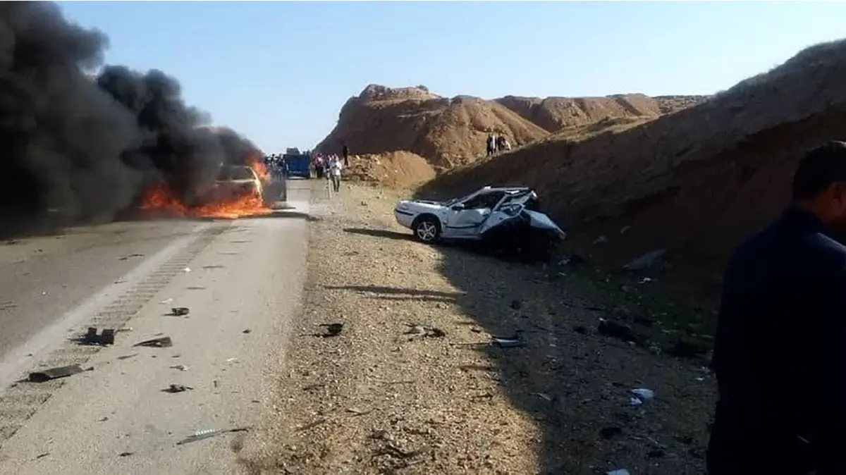 تصادف هولناک در جاده اهواز/ قاتل جاده با ماشین شعله ور گریخت +عکس