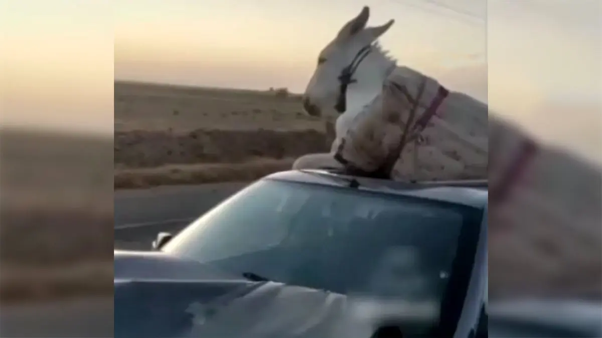 حوادث رکنا: فیلمی عجیب از تصادف یک الاغ با پژو در جاده منتشر شده است.