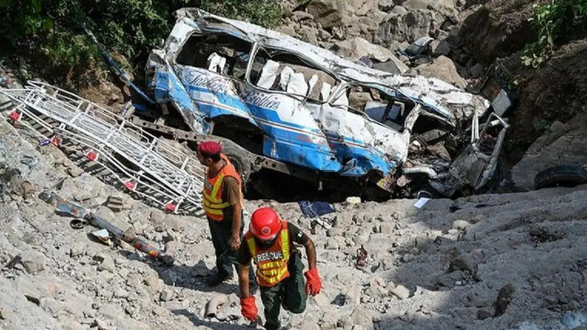حوادث رکنا : سقوط یک اتوبوس حامل عروس، داماد و اقوام آنها در پاکستان در لحظاتی این جشن را به عزا تبدل کرد.