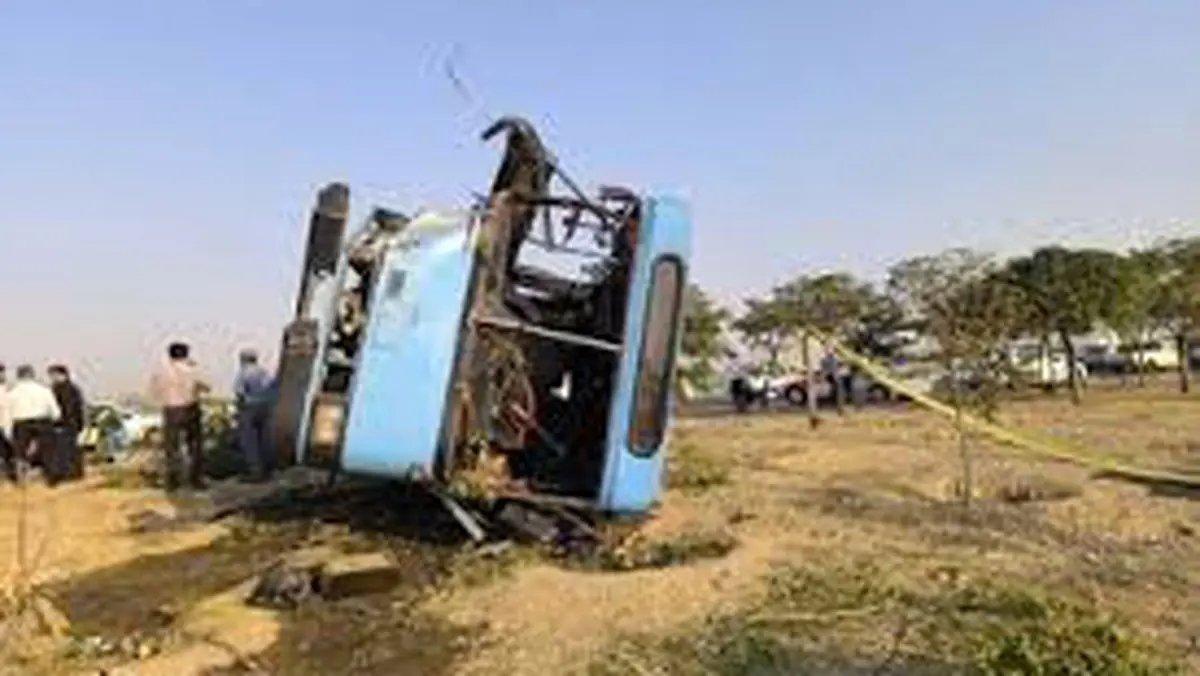 حادثه برای اتوبوس کارگران معدن در جاده ورزقان + علت واژگون و عکس
