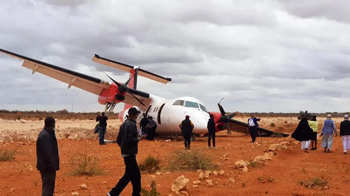 هواپیمای جمبوجت در هنگام جا به جایی در باند فرودگاه نایروبی کنیا، از مسیرش منحرف شد و به دیواره برخورد کرد.