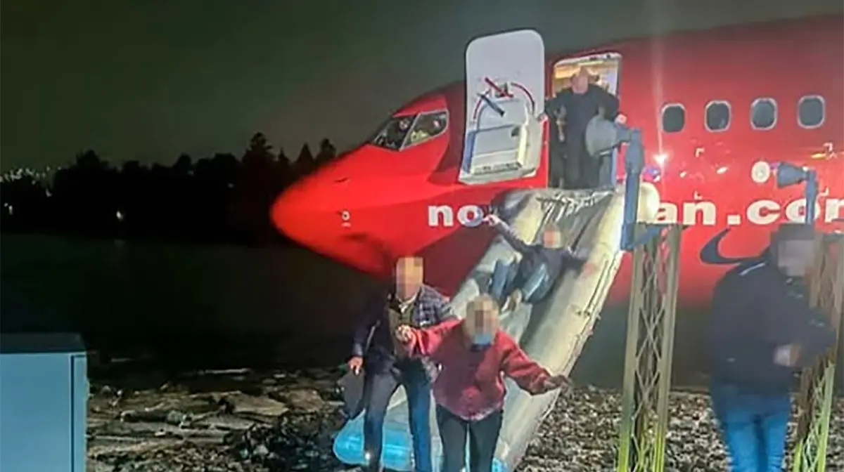 خروج اضطراری از هواپیما در نروژ/ فیلم لحظات پرتنش مسافران در سرسرههای نجات!