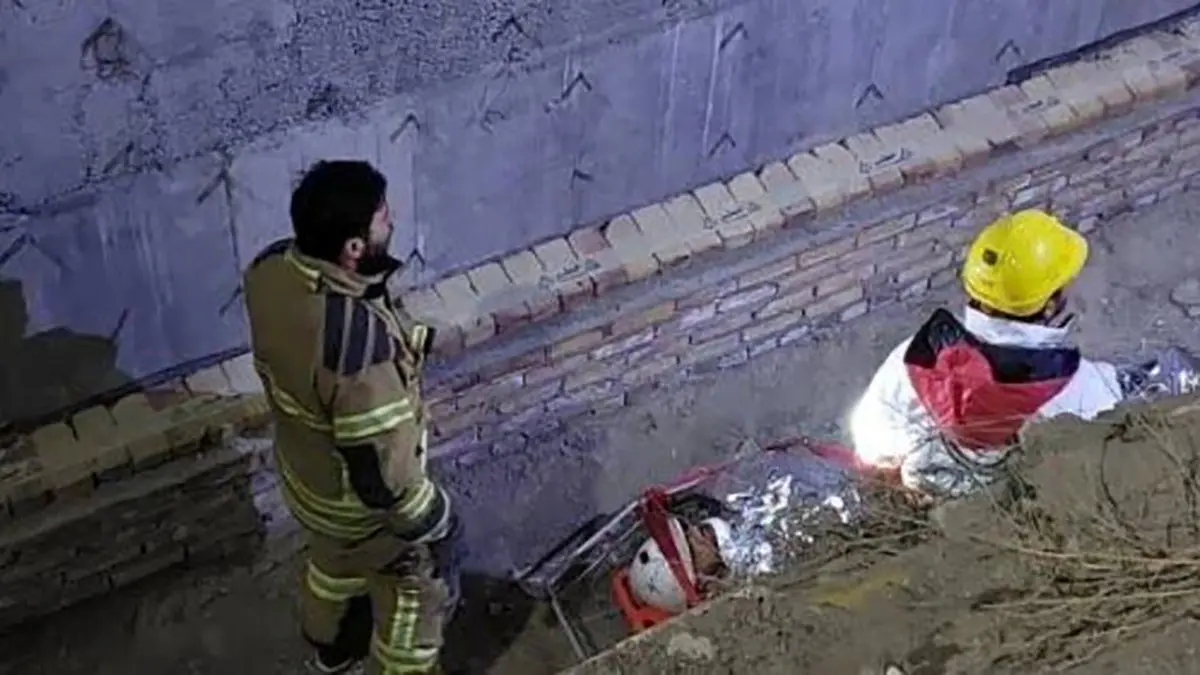تصاویری از حادثه سقوط راننده کامیون در پردیس/ راننده به گودال 6 متری سقوط کرد