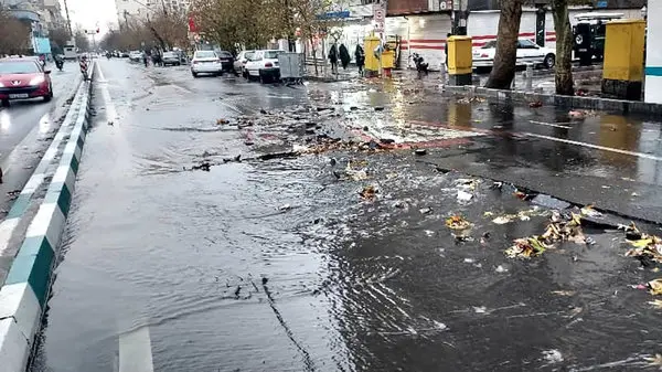 ترکیدگی لوله آب در خیابان شریعتی تهران؛ معبر مسدود است