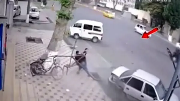فیلم تصادف وحشتناک در خیابان / این مرد خوش شانس را ببینید !