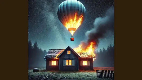 در کمال ناباوری، بالن نه تنها پرواز نکرد بلکه به طور غیرمنتظره‌ای از راه زیرشیروانی وارد خانه‌ای در نزدیکی محل روشن شدن آن شد. بالن که به دلیل شعله‌ور شدن و حرکت به سمت بالا، به طور تصادفی از مسیر خود منحرف شد، باعث بروز آتش‌سوزی در خانه شد.