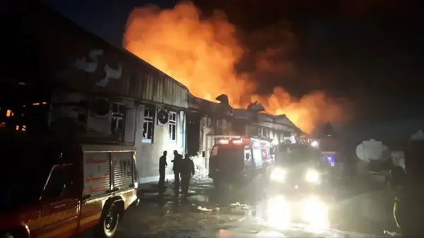 مهار آتش سوزی کارخانه پلیمر میبد پس از 5 ساعت + عکس