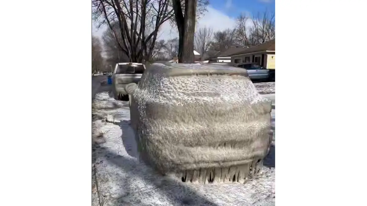 بر اثر شکستگی یک لوله آب در این منطقه، آب به خیابانها جاری شد. عبور خودروها از این مسیر باعث ریختن آب روی آنها شد و سرمای شدید بهسرعت این آب را به لایهای ضخیم از یخ تبدیل کرد. در نتیجه، خودروها بهطور کامل در یخ محصور شدند و حرکت آنها بسیار دشوار شد.