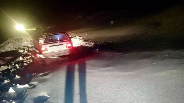 نجات معجزه آسای ۵ سرنشین گرفتار شده پراید در برف و کولاک
