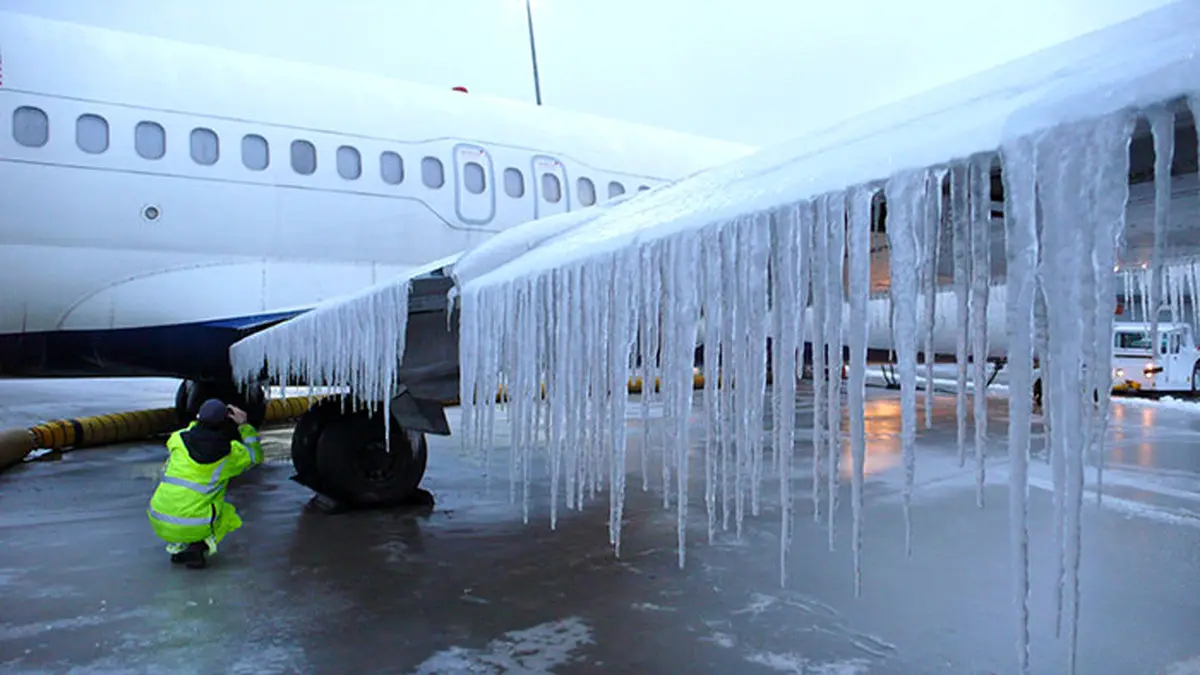 تشکیل لایه‌های یخ روی بدنه و بال‌های هواپیما می‌تواند عملکرد آیرودینامیکی آن را مختل کرده و حتی باعث مشکلاتی در هنگام پرواز شود. برای جلوگیری از این مشکلات، پیش از پرواز، یخ‌زدایی با استفاده از مایعات مخصوص ضدیخ انجام می‌شود.
