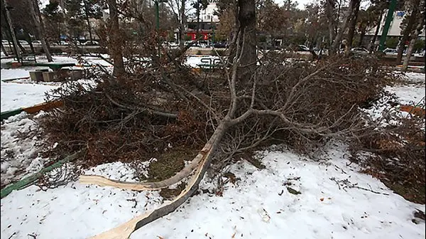 حوادث رکنا: بارش سنگین برف منجر به شکستن درختان در ارومیه شد.