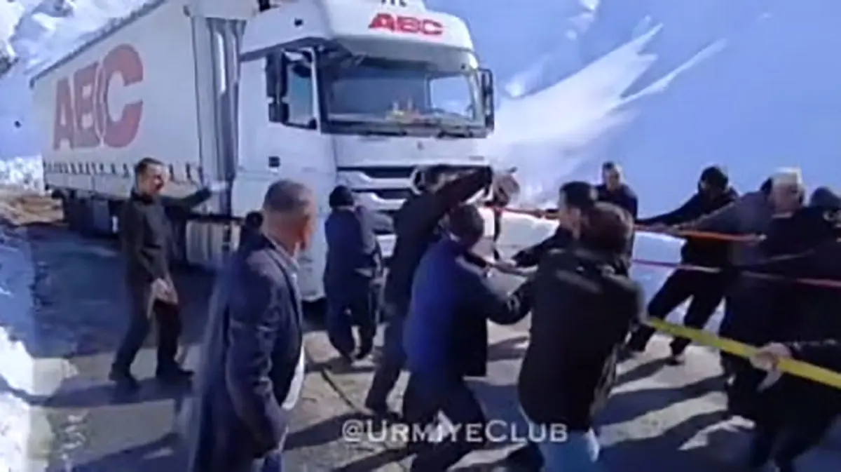 کمک مردم ارومیه ای به راننده تریلی گرفتار + فیلم