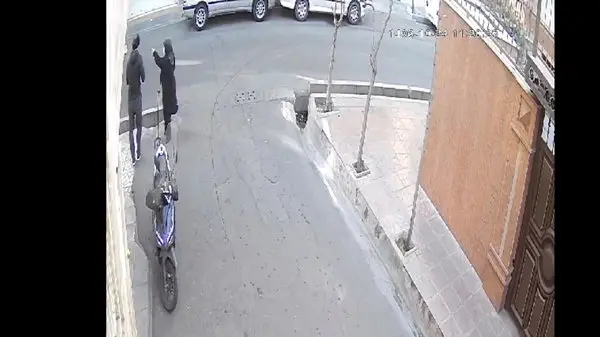 طبق فیلمی که از دوربینهای مداربسته منتشر شده، زن میانسالی که با عصا در حال عبور از خیابان بود، ناگهان با یک موتورسوار جوان مواجه شد. این موتورسوار که سوار بر موتوری بنفش بود، ابتدا به آرامی به زن نزدیک شد و سپس در کوچهای خلوت در کنار خیابان چند دور زد.