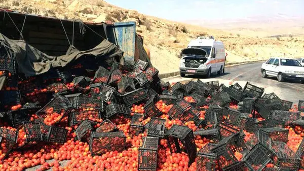 کامیون پر از گوجه وسط جاده واژگون شد / همه گوجه ها رب شدند!