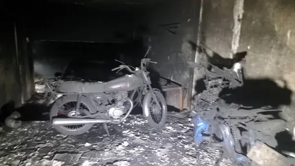 سخنگوی سازمان آتش‌نشانی تهران افزود: در قسمت زیرزمین که به عنوان پارکینگ استفاده می‌شده، چند دستگاه خودرو و موتور قرار داشت. آتش‌نشانان مشاهده کردند که یک دستگاه پژو پرشیا، یک دستگاه پژو 207 و 5 دستگاه موتورسیکلت کاملاً شعله‌ور شده‌اند. همچنین یک دستگاه موتور و یک دستگاه پژو 207 دیگر نیز بخشی از آن‌ها دچار آتش‌سوزی شده بودند و آتش در آستانه سرایت به آن‌ها بود.