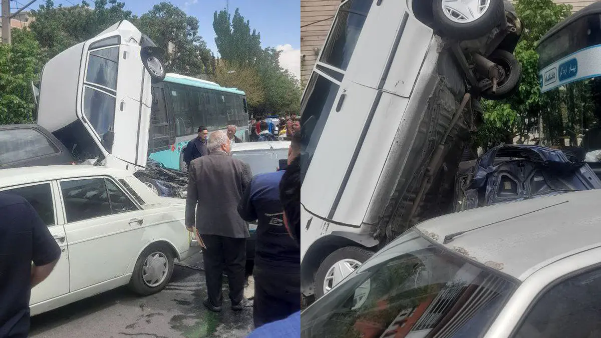 حوادث رکنا: ترمز بریدن یک اتوبوس شهری در خیابان ارهگر تبریز منجر به برخورد با چندین خودروی عبوری شد.