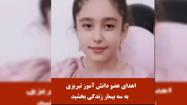 به گزارش رکنا، عسل حجابی، دانشآموز پایه هشتم که بر اثر خونریزی مغزی دچار مرگ مغزی شده بود، پس از چند روز بستری در بیمارستان و تأیید عدم بازگشت وضعیت او توسط پزشکان، با تصمیم تحسینبرانگیز خانوادهاش، جان سه بیمار دیگر را نجات داد.
