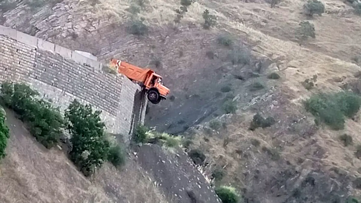 مرگ تا یک قدمی راننده کامیون / کمپرسی در آستانه سقوط به دره بود !