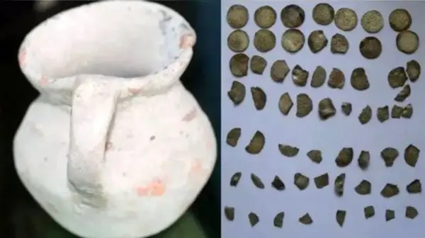 ظرف سفالی که سکهها در درون آن قرار داشتند