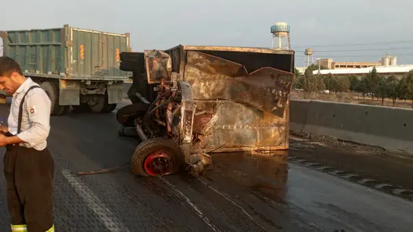 وی افزد: با حضور ماموران در محل حادثه مشخص شد این کامیون به دلیل نامشخصی از جاده خارج و با گاردریل حاشیه آزادراه برخورد کرده که پس از واژگونی دچار آتشسوزی شده است.