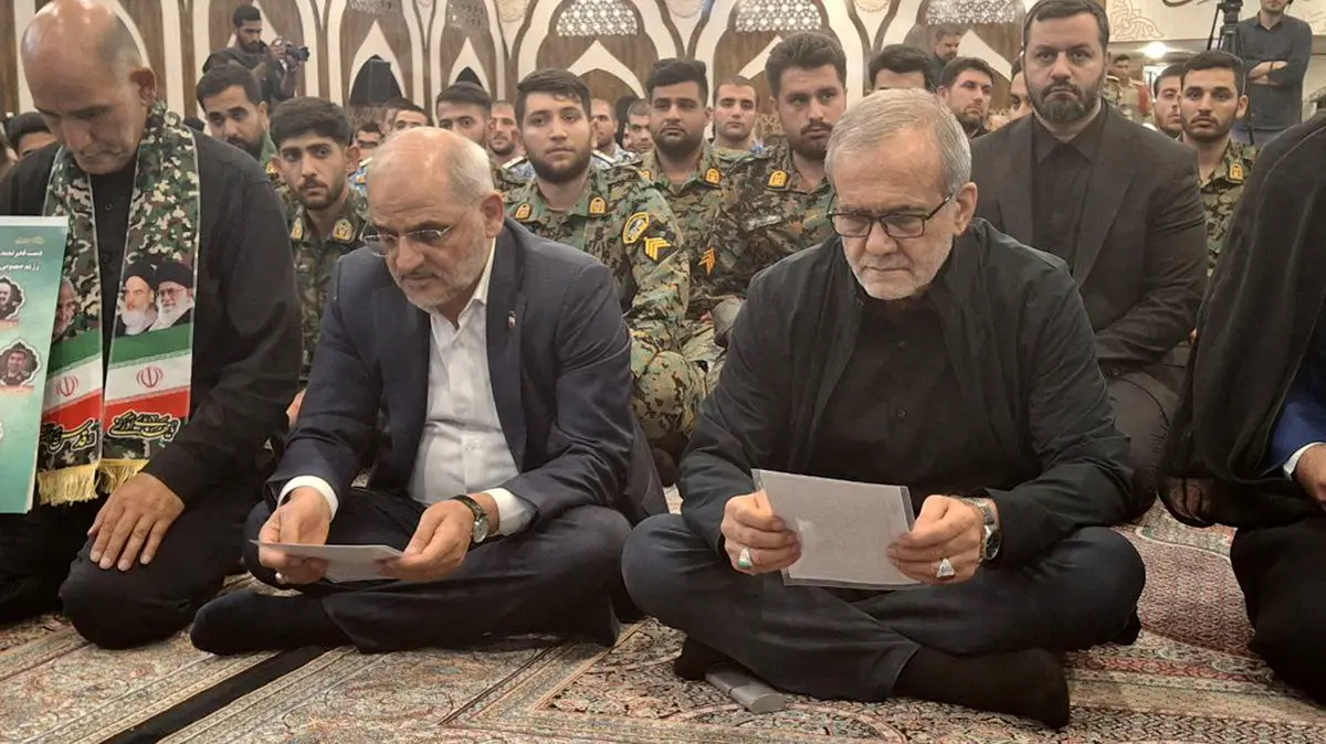 عکس حضور مسعود پزشکیان رئیس جمهور ایران در مراسم گرامیداشت شهدای جنگ 12 روزه فاتب