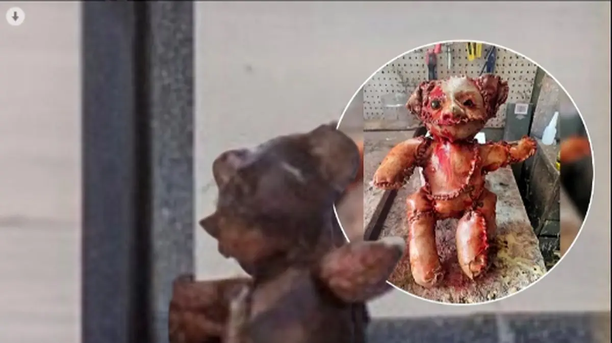 کشف وحشتناک عروسک خرسی که از پوست انسان درست شده در کنار یک پمپ بنزین / چقد ترسناکه !