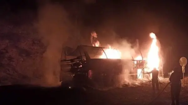 ماجرای آتش گرفتن اتوبوس مسافربری در محور جبالبارز به جیرفت
